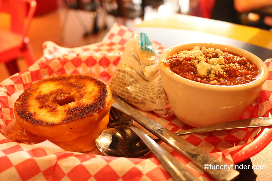 (Left) The Grilled Cheese Donut and (Right) the Blue Cheese Chili